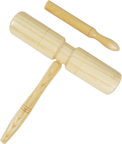 - Dźwięki uzyskiwane poprzez uderzanie pałką korpusu instrumentu