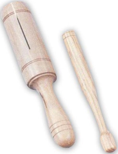 - Cylindryczne pudełko akustyczne pozwalające na uzyskiwanie zróżnicowanych dźwięków poprzez uderzanie drewnianą pałką powierzchni instrumentu