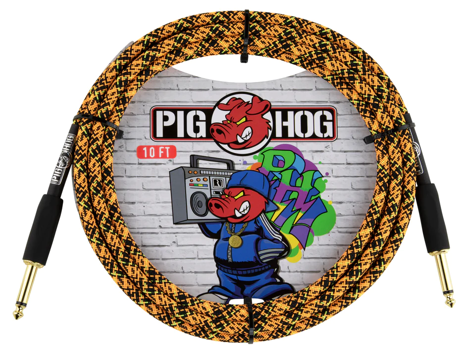 Kabel instrumentalny łamany marki Pig Hog z serii Graffiti, seria ta skupia się na tworzeniu wizualnego kolorowego kontrolowanego chaosu.