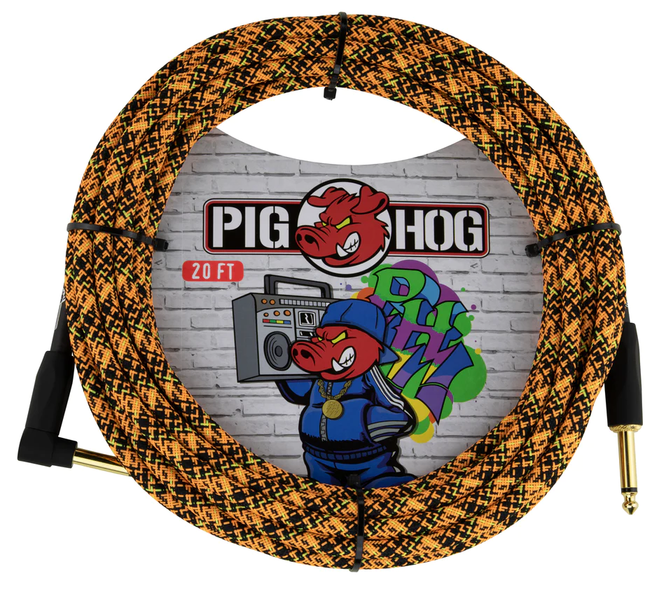 Kabel instrumentalny łamany marki Pig Hog z serii Graffiti, seria ta skupia się na tworzeniu wizualnego kolorowego kontrolowanego chaosu.