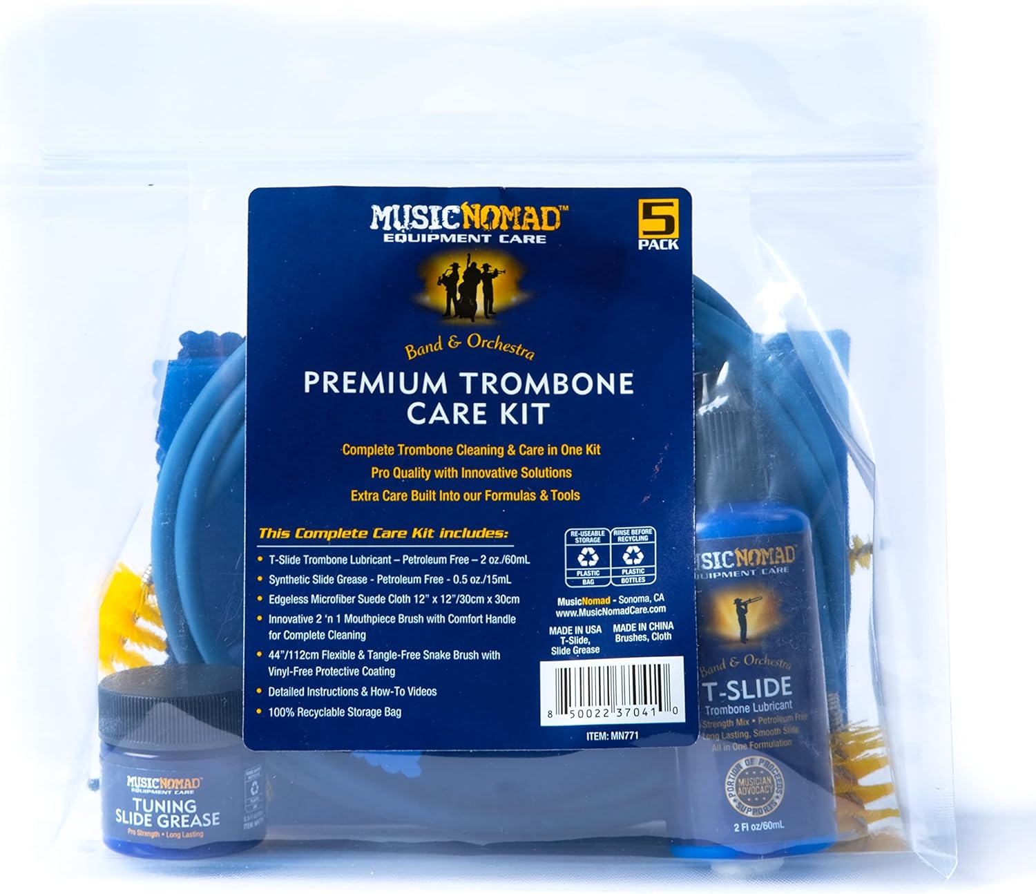 Ten 5-częściowy zestaw MusicNomad to wyższy standard tego, czego należy oczekiwać przy zakupie zestawu do czyszczenia i pielęgnacji puzonu.