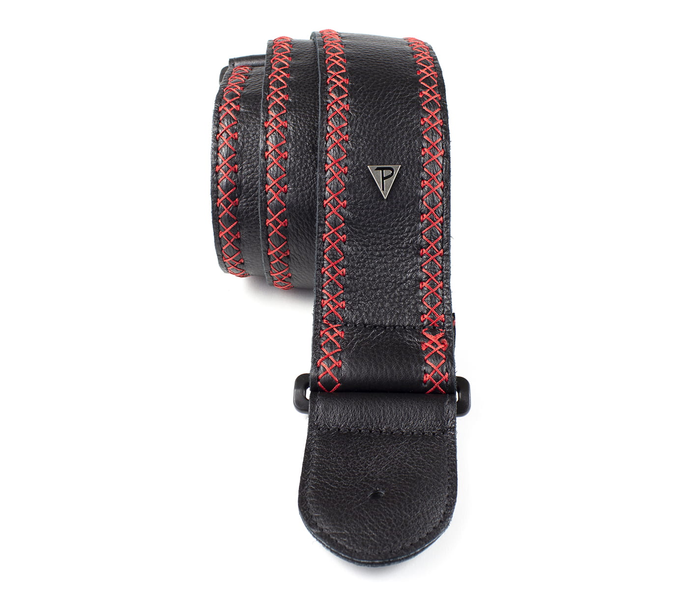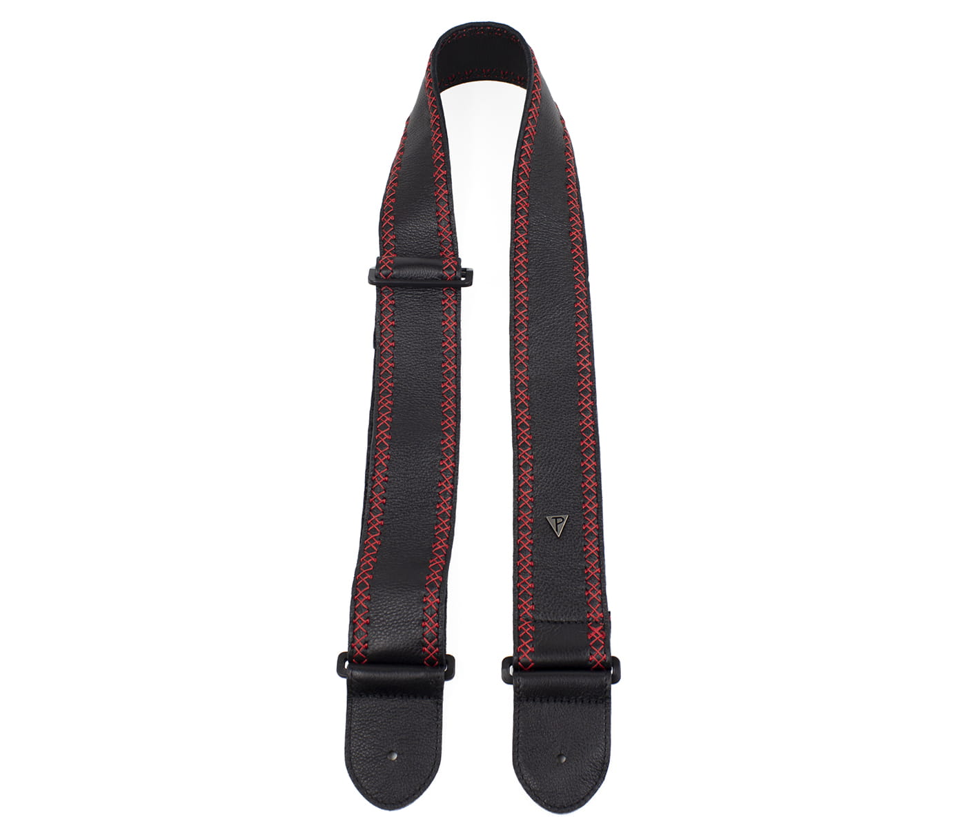 Pasek gitarowy Perri's 7291 2.5” Soft Black Glove Leather with Red Fancy Stitch
