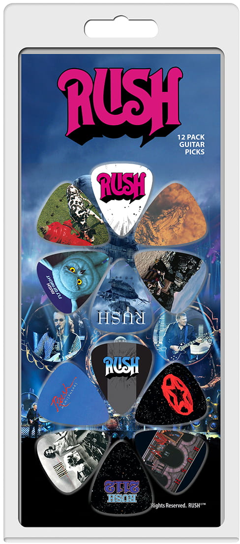 - Różne wzory licencjonowanych piórek z zespołu Rush