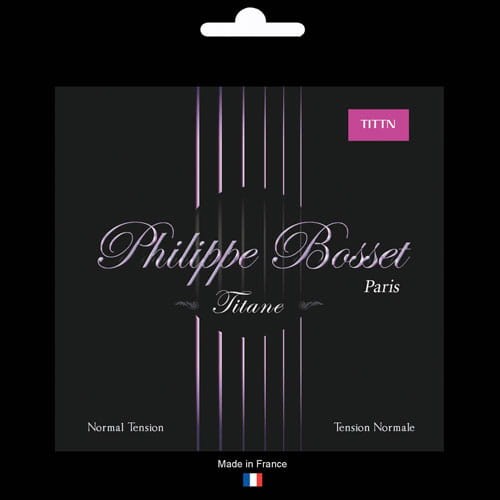 Niższe struny są identyczne do innych kompletów Philippe Bosset ze stopu miedzi platerowanej, prawdziwie posrebrzane. Dostępne struny o napięciu wysokim i normalnym.