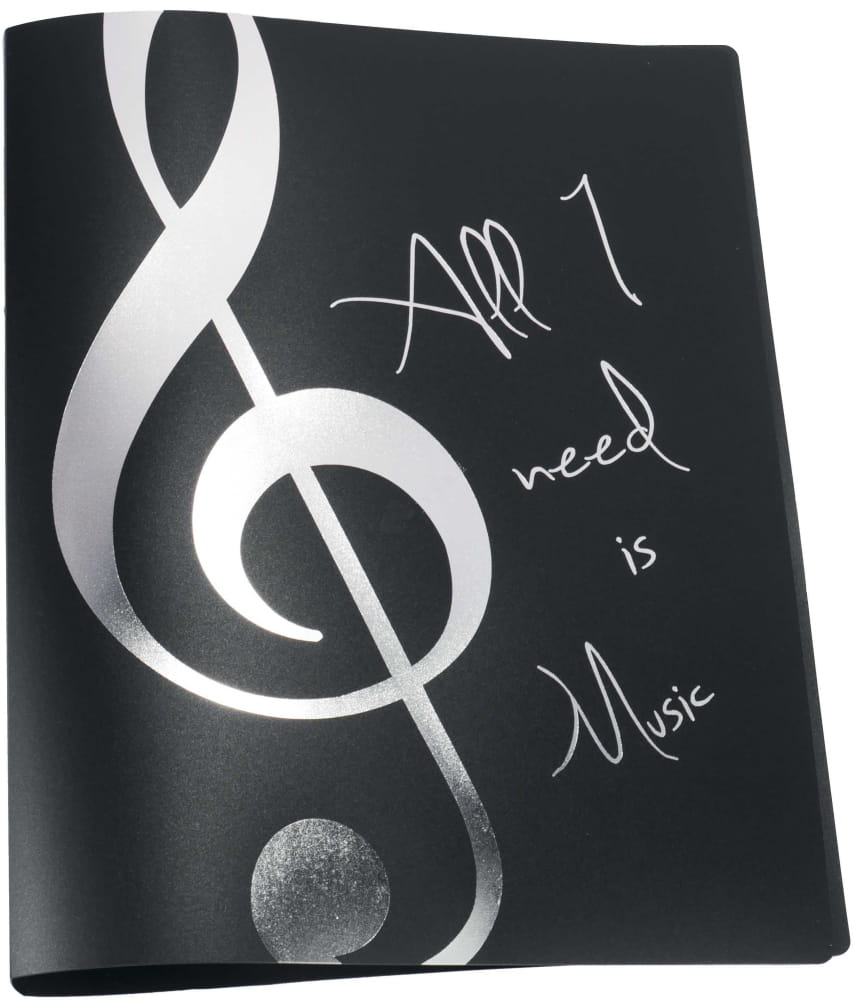 - Motyw: Srebrny klucz wiolinowy, napis All I need is Music